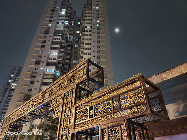 iQOO Neo5活力版本身夜拍表現(xiàn)就不錯,手動開啟夜景模式后,畫面細(xì)節(jié)和整體亮度均勻性又有著明顯提升,以上方對比樣張為例,夜景模式樣張?zhí)炜崭蛹儍?,紋理細(xì)節(jié)更加清晰。
