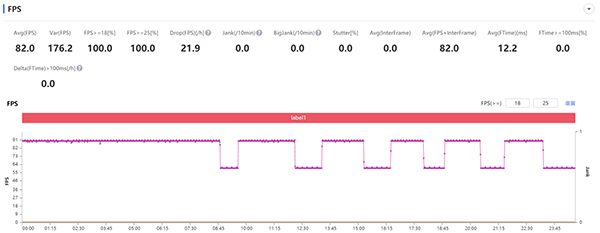 實(shí)際測出的結(jié)果是比較有趣的,iQOO Neo5活力版支持王者榮耀的最高特效90幀模式,但在游玩一段時(shí)間后會因?yàn)榘l(fā)熱鎖定在60幀,隨著溫度的降低,又恢復(fù)到90幀,如此循環(huán)往復(fù),最終30分鐘平均幀率為82幀。