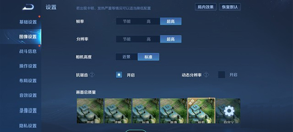 -游戲內(nèi):開啟抗鋸齒、超高幀率、超高分辨率、極致畫面效果,HDR特效亮度為亮。