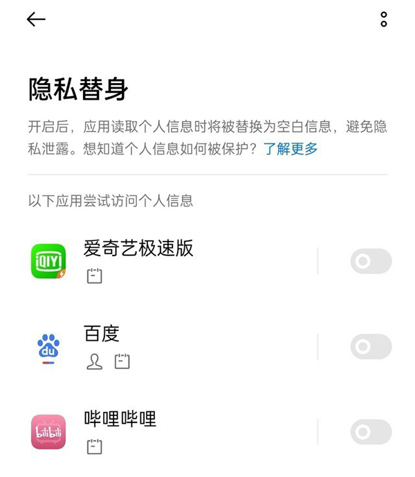 在個(gè)人隱私保護(hù)備受重視的背景下,OPPO Reno6 Pro+搭載的ColorOS11為用戶提供了隱私替身功能。開啟該功能后,手機(jī)應(yīng)用在讀取個(gè)人信息時(shí)僅能讀取到空白信息,從而避免了個(gè)人隱私的泄漏。