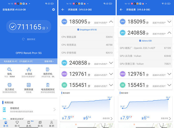 OPPO Reno6系列在升級(jí)上一代就很突出的影像系統(tǒng)同時(shí),還對(duì)性能進(jìn)行了全方位的升級(jí)、全系標(biāo)配線性馬達(dá),游戲方面有突破性提升。特別是搭載了驍龍870處理器的OPPO Reno6 Pro+,即使是重度游戲玩家也能獲得不錯(cuò)的體驗(yàn)。OPPO Reno6 Pro+搭載驍龍870處理器,還配備UFS 3.1高速存儲(chǔ),帶來(lái)旗艦級(jí)的硬件性能。根據(jù)實(shí)際測(cè)試,安兔兔V9版本跑分可達(dá)71萬(wàn)+,理論成績(jī)能有這樣的表現(xiàn)已經(jīng)很不錯(cuò)了。