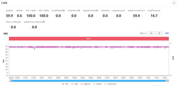 在《和平精英》游戲測(cè)試中,HDR高清畫質(zhì)+極限幀率設(shè)置下,游戲平均幀數(shù)可達(dá)59.9幀,畫面表現(xiàn)和流暢度都很好。