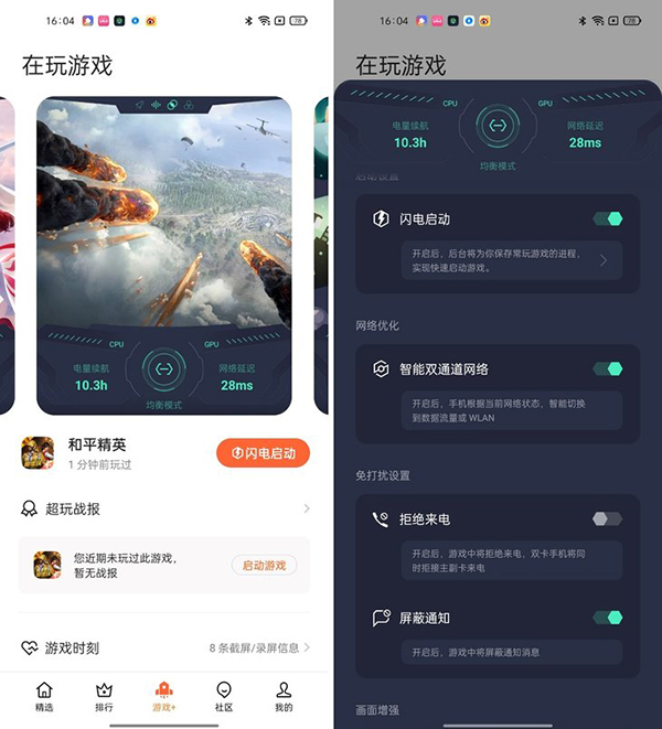 在軟件方面,OPPO Reno6 Pro+針對(duì)游戲體驗(yàn)做了不少優(yōu)化。OPPO Reno6 Pro+支持閃電啟動(dòng),在游戲空間可以一鍵直達(dá)游戲首頁(yè),自動(dòng)跳轉(zhuǎn)游戲開(kāi)頭動(dòng)畫。系統(tǒng)識(shí)別到常玩游戲后,還會(huì)對(duì)這款游戲進(jìn)行亮滅屏?;钐幚恚词鼓闱袚Q到其它場(chǎng)景使用,下次進(jìn)入游戲也能實(shí)現(xiàn)閃電進(jìn)入,大幅縮短啟動(dòng)等待時(shí)間。