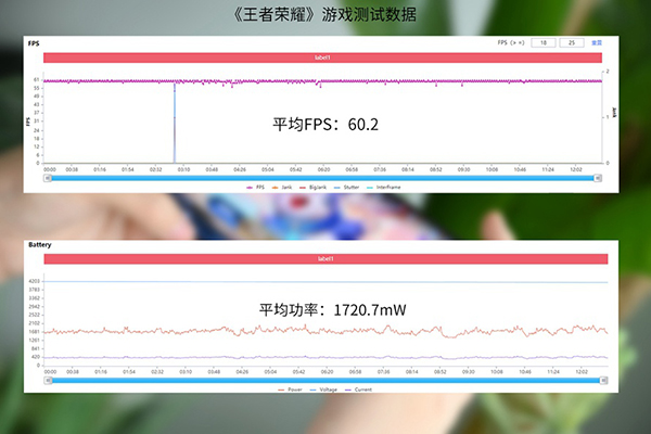 OPPO Reno6 Pro+搭載的是驍龍870旗艦處理器,雖然性能不敵驍龍888,但是好在穩(wěn),功耗低。在輕薄機身下,性能達到旗艦水準(zhǔn),這不就是我們一直所要的輕薄機嗎?在《王者榮耀》游戲體驗中,平均FPS數(shù)值為60.2,F(xiàn)PS的數(shù)值走勢基本以一條直線運行,由此也可看出其穩(wěn)定的性能支撐,游戲時的平均功耗為1720.7mW。