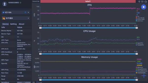 在測(cè)試《王者榮耀》的時(shí)候,我們最開始是打開了60幀,iQOO Neo5活力版基本完美流暢運(yùn)行,毫無壓力。從幀率圖可以看出,前期十分穩(wěn)定,幾乎沒有出現(xiàn)掉幀及幀率波動(dòng)的情況。在對(duì)局中,我們將幀率從60幀調(diào)整為90幀,來考驗(yàn)一下它的極限幀率表現(xiàn)如何。同樣從幀率圖我們可以得知,除了極個(gè)別團(tuán)戰(zhàn)時(shí)的幀率細(xì)微波動(dòng)之外,整體而言iQOO Neo5活力版是可以完美運(yùn)行《王者榮耀》的90幀畫質(zhì)的。