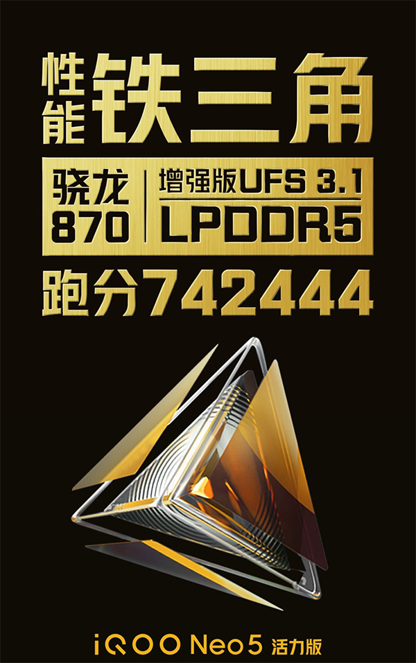 根據(jù)官方測試,在安兔兔跑分測試中取得了超過74萬分的好成績,綜合性能比同價位許多機(jī)型都要強(qiáng)悍,相比于驍龍865,其CPU和GPU性能都提升了10%。同時iQOO Neo5活力版還采用了增強(qiáng)版 UFS 3.1和LPDDR5,且支持內(nèi)存融合技術(shù),整體性能可以說十分強(qiáng)悍了。