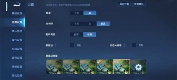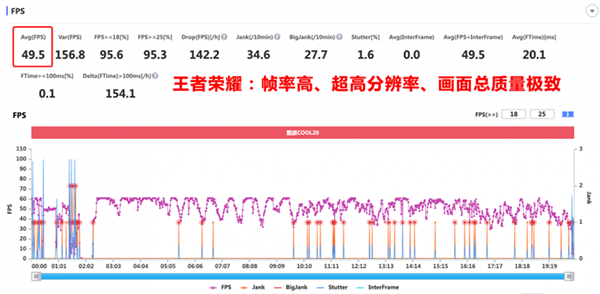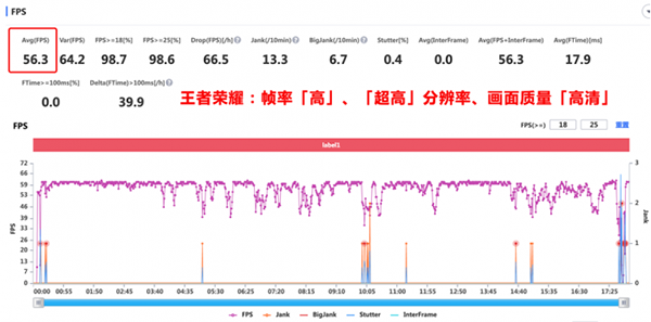 通過游戲?qū)崪y,王者榮耀可以開啟高幀率模式、超高分辨率、極致畫質(zhì)(平均達(dá)到了49.5 FPS),游戲中會略出現(xiàn)小跳幀現(xiàn)象,調(diào)整“高分辨率+高清畫質(zhì)”相對穩(wěn)定了(平均達(dá)到了56.3);