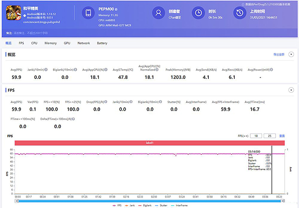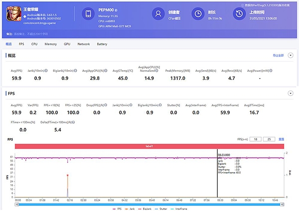 在《王者榮耀》的最高畫質(zhì)下運行“夢境大亂斗”模式,OPPO Reno6 Pro可以始終保持在59.9FPS滿幀狀態(tài),穩(wěn)定非常。