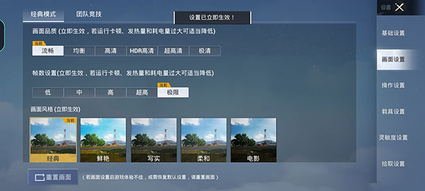 在《和平精英》中,OPPO Reno6 Pro目前僅適配HDR高清模式+超高幀數(shù)(40FPS)。如果想解鎖60FPS需要將畫質(zhì)降低到“流暢”。在海島地圖上,Reno6 Pro無論采用哪種畫質(zhì)和幀數(shù)的組合都能滿幀運行,毫無壓力。