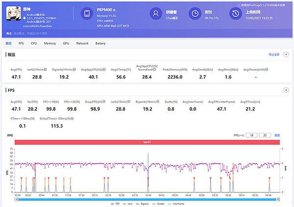 《原神》應該是目前手機領(lǐng)域的“硬件殺手”,哪怕是OPPO Reno6 Pro在最高畫質(zhì)+60FPS幀率下,也只能跑出47FPS的平均幀數(shù),而且在戰(zhàn)斗過程中的幀率波動也較為明顯。如果你對流暢性要求更高,建議適當降低畫質(zhì),或是選擇搭載驍龍870的Reno6 Pro+。
