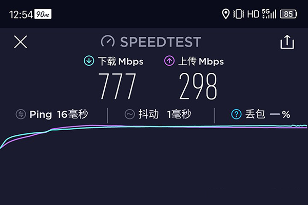 在5G單連接的狀態(tài)下,實(shí)測(cè)Z30 Pro的5G速率可以跑滿帶寬,下行速率高達(dá)777Mbps,同時(shí)上行速率接近300Mbps,總體性能非常優(yōu)秀。