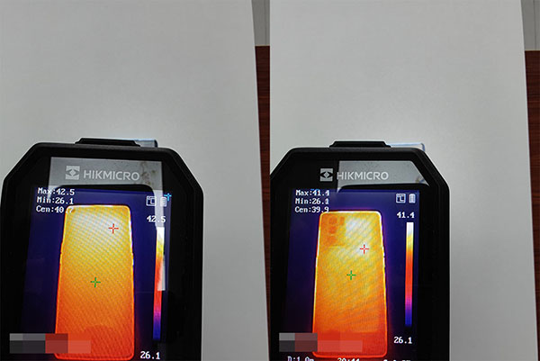 而溫度方面,我們在游戲之后分別進(jìn)行了溫度測試,在性能要求更高的《和平精英》游戲結(jié)束之后,手機(jī)正面的最高溫度來到了42.5℃,背部最高溫度為41.4℃,體感上還算不錯。