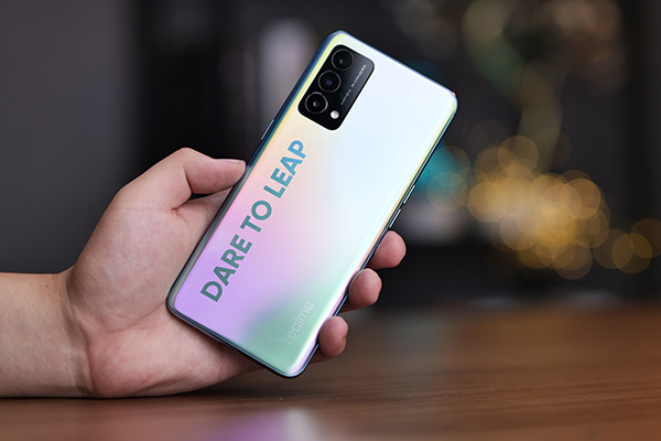 realme的品牌Logo以"DARE TO LEAP"采用紋理局部鏤空,展現(xiàn)出絢麗多彩的變幻效果。在重量和厚度上,之前Q3 Pro的179g和8.4mm已經(jīng)足夠輕薄,而realme真我Q3 Pro狂歡版更為輕薄,只有174g和8.1mm,作為一款5G手機來說,這樣的規(guī)格還是很亮眼的,結(jié)合背部弧面處理的后殼,拿在手上很趁手。