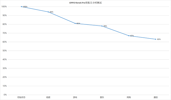 為了進(jìn)一步量化續(xù)航表現(xiàn),小編這里進(jìn)行了5小時(shí)的續(xù)航測(cè)試。測(cè)試時(shí)將亮度調(diào)整到最大狀態(tài),處于WiFi 5G網(wǎng)絡(luò)連接狀態(tài)。主要測(cè)試了視頻(半小時(shí)B站,半小時(shí)騰訊視頻)、游戲(王者榮耀)、音樂(網(wǎng)易云音樂)、網(wǎng)購(gòu)APP(京東和淘寶)和通話這5項(xiàng)。小編這里并沒有測(cè)試拍照,主要是認(rèn)為在日常場(chǎng)景中拍照是比較瑣碎的,也不太好測(cè)試。