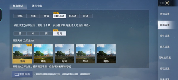 接下來是《和平精英》,這是筆者每天都要玩的游戲。在游戲設(shè)置中,筆者將畫面選擇了HDR高清,幀數(shù)選擇了超高,下面我們看下三方軟件的監(jiān)測數(shù)據(jù)。