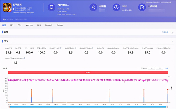 在實際的游戲測試中,也驗證了跑分上的理論。在《和平精英》游戲中,開啟HDR超高清畫質(zhì)、超高幀率外加抗鋸齒,在30分鐘的游戲中平均幀率為39.9fps,幀率方差為0.3fps;在溫度控制方面,游戲開始測得的CPU溫度為46攝氏度,30分鐘最高溫度為50攝氏度,平均溫度為46.8攝氏度