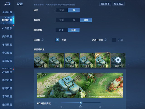 《王者榮耀》畫面設(shè)置,支持高幀率