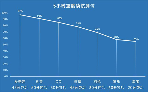 剩余55%電量的成績(jī)不虛其它非輕薄手機(jī),4500毫安時(shí)電池果然有用。每一階段的具體耗電如下: