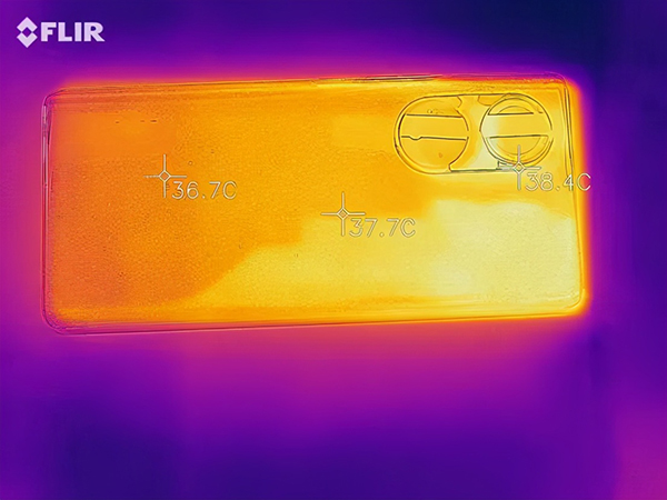 在連續(xù)試玩一小時(shí)游戲后,長時(shí)間握持機(jī)身也不會(huì)有燙手的感覺。實(shí)際測量最高處溫度也可以保持在38℃左右,只是略高于人體體溫,散熱表現(xiàn)良好。