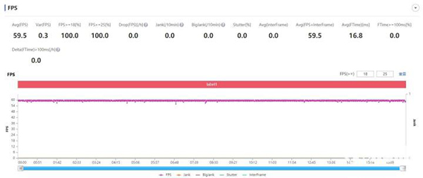 在實際游戲中的表現(xiàn),榮耀50 Pro的表現(xiàn)自然是讓人滿意的。這里我們直接來看《王者榮耀》這款國民級別游戲的實際表現(xiàn)。完全一條直線的幀數(shù)曲線看著極為舒爽,在高畫質(zhì)下運行穩(wěn)定,并且溫度是完全可控的,CPU最高溫度為46度,在機身表面的體感溫度上甚至不會感覺到熱,對持機的手感上沒有任何影響,這無疑是最理想的游戲體驗。