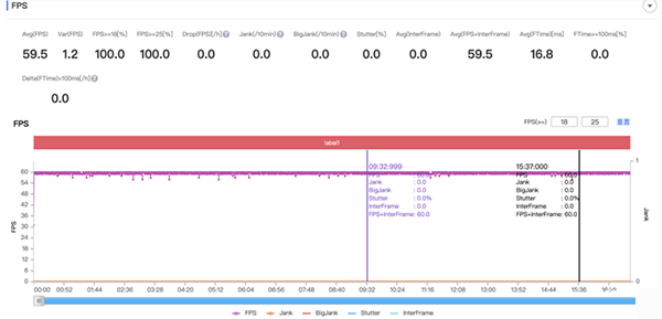在PerfDog測(cè)試軟件中,榮耀50 Pro可以跑出非常穩(wěn)定的幀率曲線,極限幀率下,平均幀率59.5FPS,接近這一畫(huà)質(zhì)下的滿幀效果。同時(shí),在影像用戶體驗(yàn)的掉幀卡頓問(wèn)題上,榮耀50 Pro一次都沒(méi)有出現(xiàn)過(guò),也就是說(shuō)它在接近20分鐘的一局游戲里,用戶不會(huì)感覺(jué)到有變卡的情況。