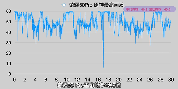 在運(yùn)行原神游戲的最高畫(huà)質(zhì)下,平均幀率來(lái)到了49.9,雖然幀率波動(dòng)較為明顯,但在幀率排行榜中的表現(xiàn)依然超越眾多驍龍870機(jī)型,甚至優(yōu)于某些搭載驍龍888的旗艦機(jī)。