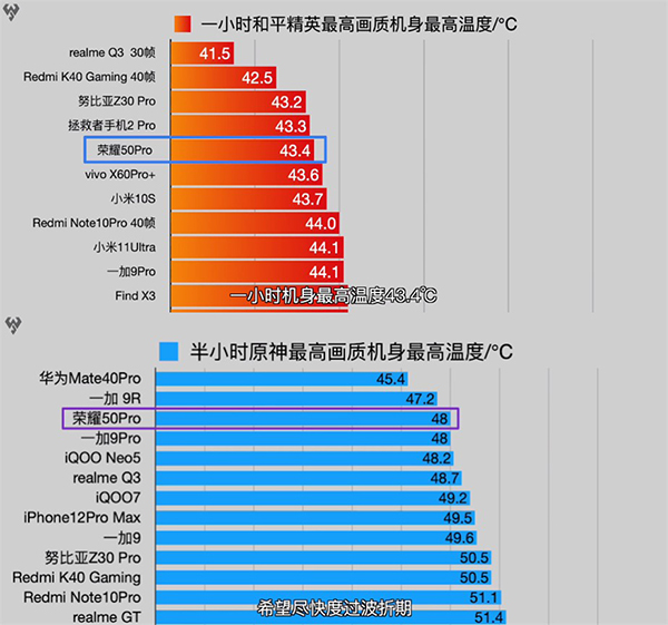 在溫控方面,在運(yùn)行和平精英最高畫(huà)質(zhì)一小時(shí)后,最高溫度為43.4度,排名第五;運(yùn)行原神最高畫(huà)質(zhì)半小時(shí)后,發(fā)熱溫度為48度,排名第三,這樣的溫控表現(xiàn)屬于第一梯隊(duì)。