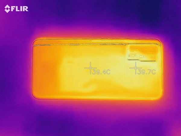 在進(jìn)行了一小時(shí)《和平精英》測(cè)試后,機(jī)身背部最高處溫度為39.7℃,和此前紅魔6 Pro(38℃左右)還是有小幅提升的,顯然,風(fēng)冷的效果還是比較明顯。