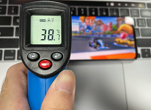 機(jī)身溫度控制得也很好,只有38.7℃,掌托部分只是感受到了一點(diǎn)溫?zé)帷?