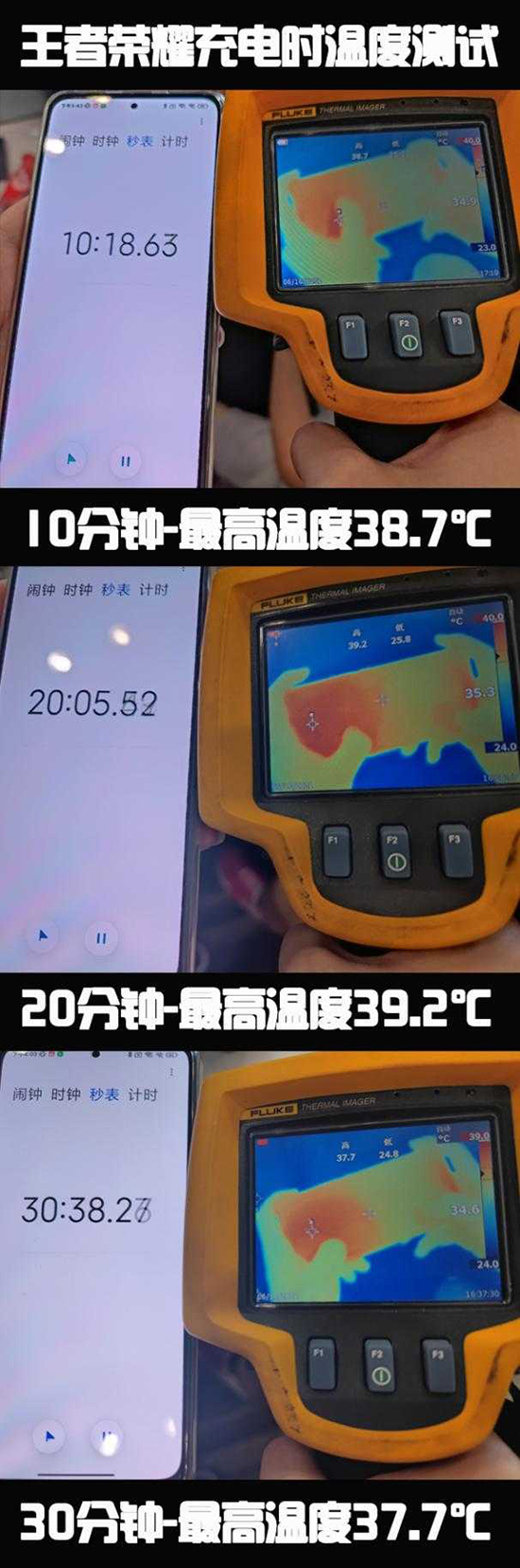 《王者榮耀》在充電過程中游玩,其中最高溫度在20分鐘時(shí)達(dá)到了39.2℃,比未充電時(shí)僅提高了2.8℃,且游戲全程的溫度波動(dòng)僅為1.5℃,可以說在充電過程與未充電過程中游玩《王者榮耀》,手機(jī)溫度并未有明顯的發(fā)燙情況出現(xiàn),因電流持續(xù)輸入而導(dǎo)致的溫度提高幾乎可以忽略不計(jì),玩家在兩種狀態(tài)下進(jìn)行《王者榮耀》可以說是體驗(yàn)并無差異。