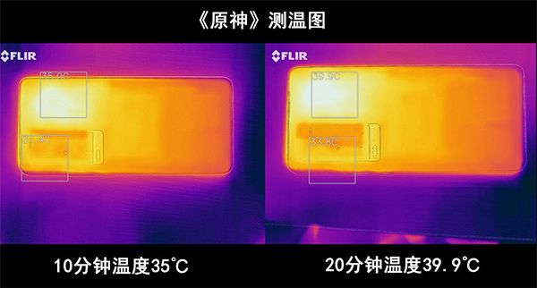具體發(fā)熱表現(xiàn)如下圖,在20℃的環(huán)境下進(jìn)行測(cè)試,經(jīng)過(guò)10分鐘后vivo X60 Pro+的機(jī)身最高溫度為35℃,20分鐘為39.9℃,并沒(méi)有達(dá)到燙手的級(jí)別。
