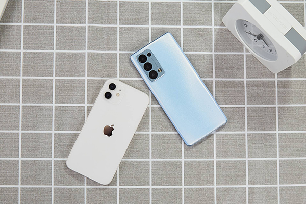 左到右:iPhone 12、OPPO Reno6 Pro+