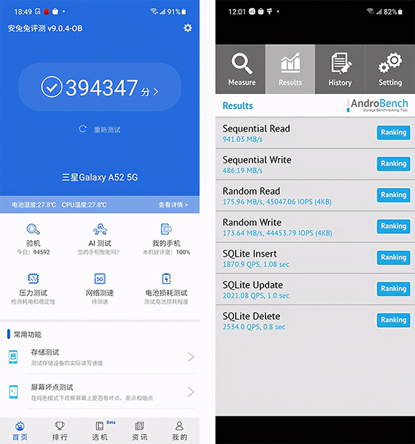 安兔兔跑分達(dá)到39萬(wàn)+,屬于中端芯片中比較靠后的,整體性能在同價(jià)位并不占優(yōu)勢(shì),放在國(guó)產(chǎn)手機(jī)中直接就是千元機(jī)的水平了。同時(shí),順序讀寫分別為941.03MB/s和486MB/s,應(yīng)該是UFS2.1閃存,這也有點(diǎn)簡(jiǎn)配了,最起碼也得上個(gè)UFS2.2啊。