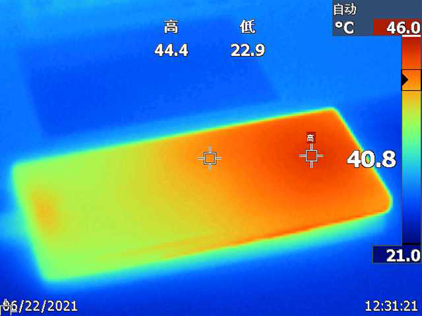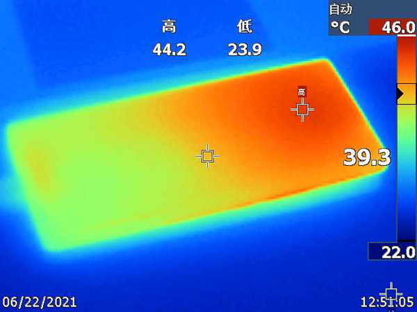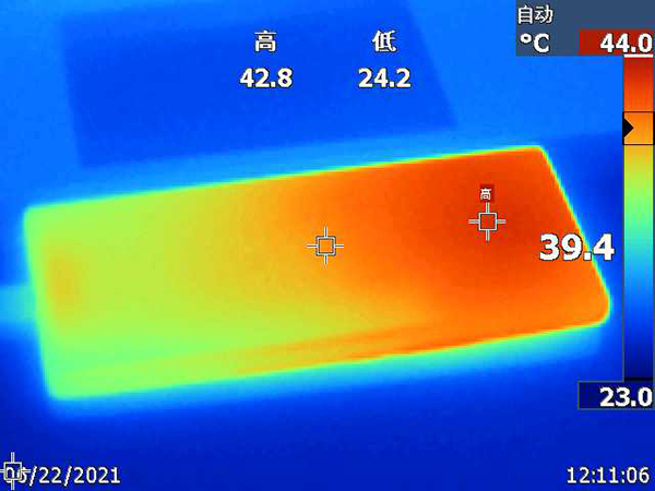 游戲在進行到20分鐘的時候機身最高溫度處達到42.8℃。