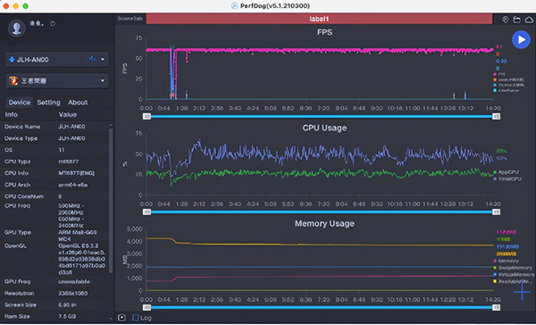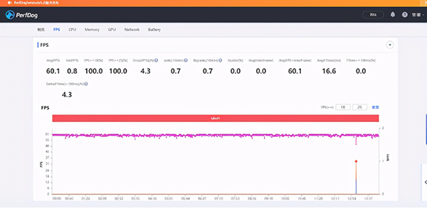 榮耀通過芯片的底層優(yōu)化和深度調(diào)校,能夠使芯片的性能得到充分的發(fā)揮,配合GPU Turbo X技術(shù),給玩家酣暢的滿幀體驗(yàn)。經(jīng)過實(shí)測,榮耀50 SE在《王者榮耀》中可以實(shí)現(xiàn)滿幀的60幀?!逗推骄ⅰ芬部梢詫?shí)現(xiàn)滿幀的30幀。從幀率曲線看到,整局的過程中,都沒有出現(xiàn)大的幀率波動,也就是卡頓的情況。