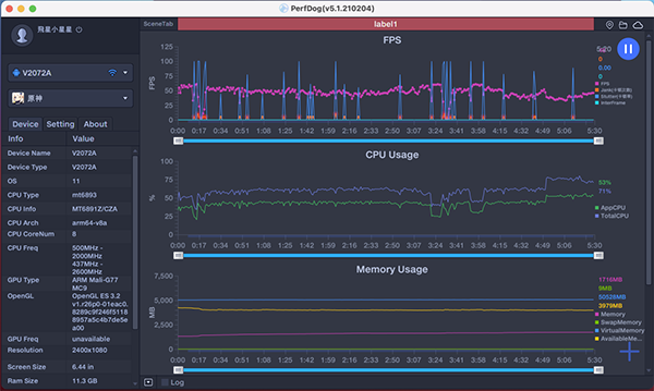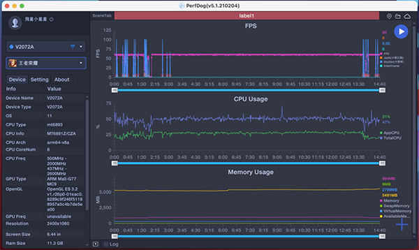 并且通過《PerfDog》軟件的實時監(jiān)測,vivo S9運行《王者榮耀》實時對戰(zhàn)中,超高清畫質(zhì)能全完全拉滿60FPS運行,而且游戲整體占用手機的內(nèi)存和CPU的整體占用率并不太高,vivo S9完全無壓力下輕松《王者榮耀》,并且在vivo獨有Multi-Turbo 5.0優(yōu)化下,還能助你輕松排位上分。