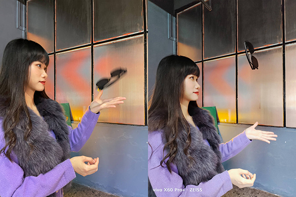 vivo X60 Pro+在拍照上的一大亮點就是微云臺的加入,使得其擁有了更強的防抖性能。而防抖性能的增強,則是讓vivo X60 Pro+實現(xiàn)更好的抓拍、夜拍和錄像體驗。從下面的對比圖中,我們可以看到內(nèi)置了微云臺的vivo X60 Pro+,在抓拍時的清晰度明顯更高。