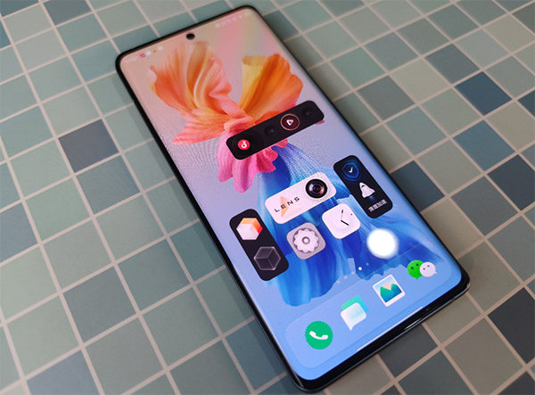 這個居中開孔的全面屏設(shè)計全是旗艦機(jī)主流的設(shè)計語言。得益于曲面屏的優(yōu)勢,vivo X60 Pro+的屏幕黑邊可以做得更窄,整機(jī)屏占比更是達(dá)到了92.7%,手機(jī)正面觀感還算出色。有意思的是,在正面屏占比高達(dá)92.7%的曲面屏之上,vivo X60 Pro+將前置單攝位置放在屏幕頂部居中,即所謂的“中極點”,有著對稱美感。