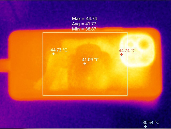 30分鐘后競(jìng)品旗艦機(jī)身背部溫度