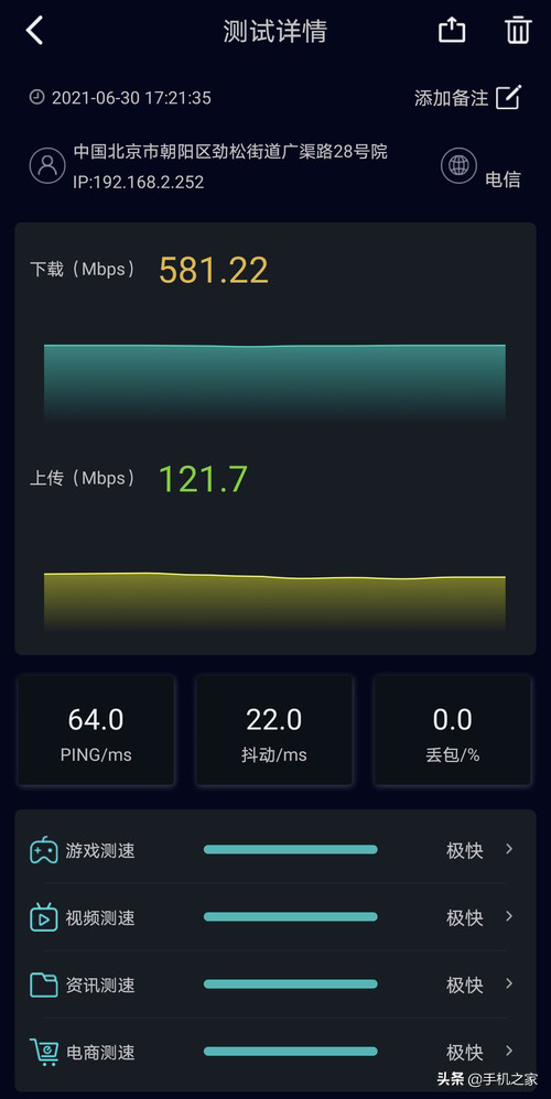 通過(guò)測(cè)試可以看到,榮耀50 Pro下載速率達(dá)到了581.22Mbps,上傳速率達(dá)到121.7Mbps,這個(gè)網(wǎng)速自然不是5G的最高水平,這取決于你所處環(huán)境5G基站和5G網(wǎng)絡(luò)覆蓋情況,5G網(wǎng)絡(luò)覆蓋好的情況下,數(shù)據(jù)必然還會(huì)更高,當(dāng)然反之可能會(huì)差一些。