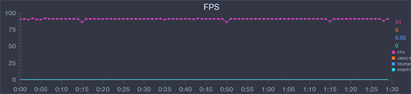 首先,Redmi紅米Note10 Pro支持高刷新率120Hz,且支持王牌戰(zhàn)士在內(nèi)的9款熱門(mén)游戲高幀率模式。所以,我將屏幕刷新率事先調(diào)到120Hz,再將王牌戰(zhàn)士中的畫(huà)面設(shè)置均調(diào)到最大值,而開(kāi)局后的游戲幀數(shù)表現(xiàn)基本維持在90Hz左右,除了角色死亡后會(huì)出現(xiàn)短暫的掉幀情況,其他時(shí)間段都是相當(dāng)穩(wěn)定的啦!