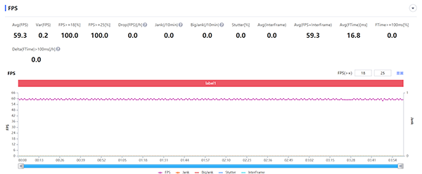 這里《崩壞3》設(shè)置為最高畫質(zhì)超清模式,《原神》設(shè)置為中等畫質(zhì)+60幀。前者能夠保持在59幀左右流暢運(yùn)行,無卡頓無明顯掉幀;對(duì)于手機(jī)性能要求更極端的后者,選擇逛大地圖+打野怪,也可以保持在全程52幀以上,雖然存在幀率波動(dòng),但未出現(xiàn)明顯的卡頓現(xiàn)象,其游戲體驗(yàn)過程還是比較輕松愉快的。