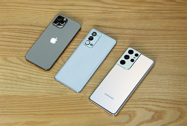(左:iPhone12 Pro 中:OPPO Reno6 Pro+ 右:三星S21 Ultra)