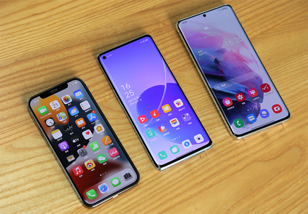 (左:OPPO Reno6 Pro+ 中:三星S21 Ultra 右:iPhone12 Pro)