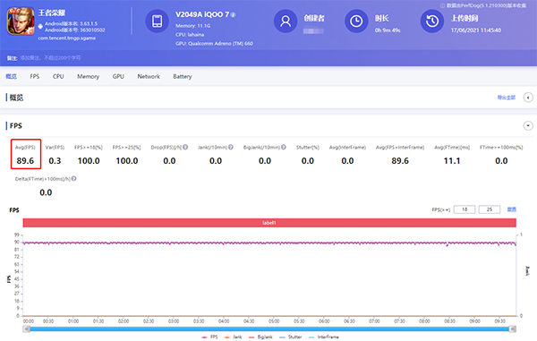 你可以看看我的實測結(jié)果,以《王者榮耀》、《和平精英》為例,小米11的王者幀率是90.3fps,吃雞幀率是89.6fps;iQOO 7的王者幀率是89.6fps,吃雞幀率是89.7fps??梢?,兩款驍龍888性能旗艦應(yīng)對這類大型手游太輕松了,均有著接近滿幀的游戲效果,而且最關(guān)鍵的是,請看它們各自的游戲掉幀、卡頓、嚴重卡頓指數(shù)都是0,這便難怪我測試時,游戲過程著實流暢。當然,由于小米11和iQOO 7屏幕都支持120Hz 刷新率,所以傳達給我的視覺觀感也很順滑。