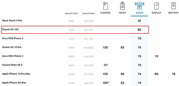 在這兩年間,國產(chǎn)手機(jī)的音質(zhì)迎來了突破,隨著各大廠商紛紛將對(duì)稱式雙揚(yáng)立體聲揚(yáng)聲器作為一項(xiàng)賣點(diǎn),手機(jī)的外放表現(xiàn)也變得更加出眾了。在眾多國產(chǎn)手機(jī)中,小米10S則是音質(zhì)表現(xiàn)最強(qiáng)的手機(jī)之一,目前這款手機(jī)在DXOMARK音頻榜單上以80分的總成績排名第二,也是迄今為止音質(zhì)最好的小米手機(jī)。