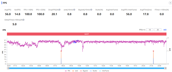 在長(zhǎng)達(dá)20分鐘的整個(gè)游戲過程當(dāng)中,該終端測(cè)試條件下平均幀率為56FPS,但是卡頓發(fā)熱現(xiàn)象到是沒有遇到,整個(gè)過程還是很流暢。