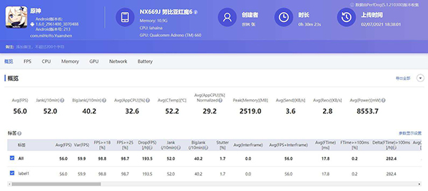 這里簡(jiǎn)單解釋一下,手機(jī)的發(fā)熱量跟室溫、游戲、游戲設(shè)置、游戲幀率都有很大的關(guān)系,游戲手機(jī)就是要全程滿血運(yùn)行,尤其是像《原神》這么吃配置的游戲,發(fā)熱量高一點(diǎn)是正?,F(xiàn)象。我們測(cè)過(guò)發(fā)熱量最高的也是黑鯊4 Pro,感覺(jué)紅魔的離心風(fēng)扇還是發(fā)揮了一定的作用的,當(dāng)然了,這也會(huì)帶來(lái)更高的功耗,它的平均功率為8.55W。