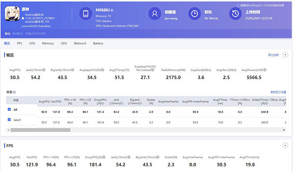 實測發(fā)現(xiàn),騰訊紅魔游戲手機6R在極限畫質(zhì)60幀模式跑出了平均幀率50.5fps,平均每十分鐘卡頓次數(shù)為54.2,平均每十分鐘嚴重卡頓次數(shù)為43.5,能耗值為5566.5。