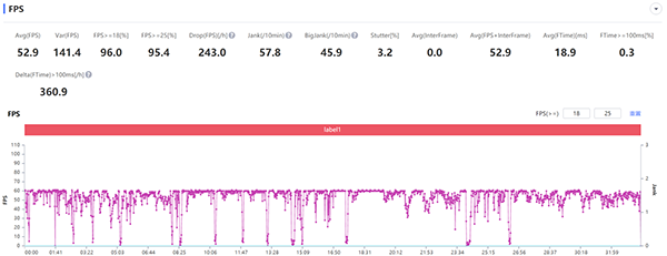 在實(shí)際的游戲體驗(yàn)上,筆者用iQOO Neo5活力版對(duì)熱門射擊類手游《使命召喚手游》進(jìn)行了測試。如上幀率圖所示,在最高畫質(zhì)下該機(jī)可以全程滿幀60幀的運(yùn)行這款游戲,游戲過程中沒有明顯的幀率波動(dòng)。